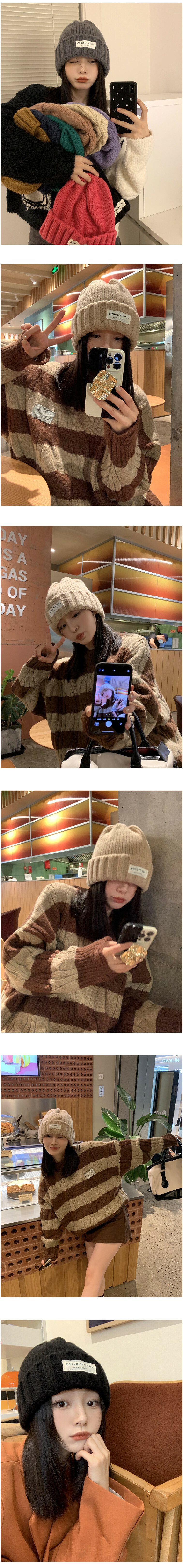 熱賣大頭圍毛線帽子護耳包頭帽保暖針織帽(均碼(55-59cm)淺卡其)