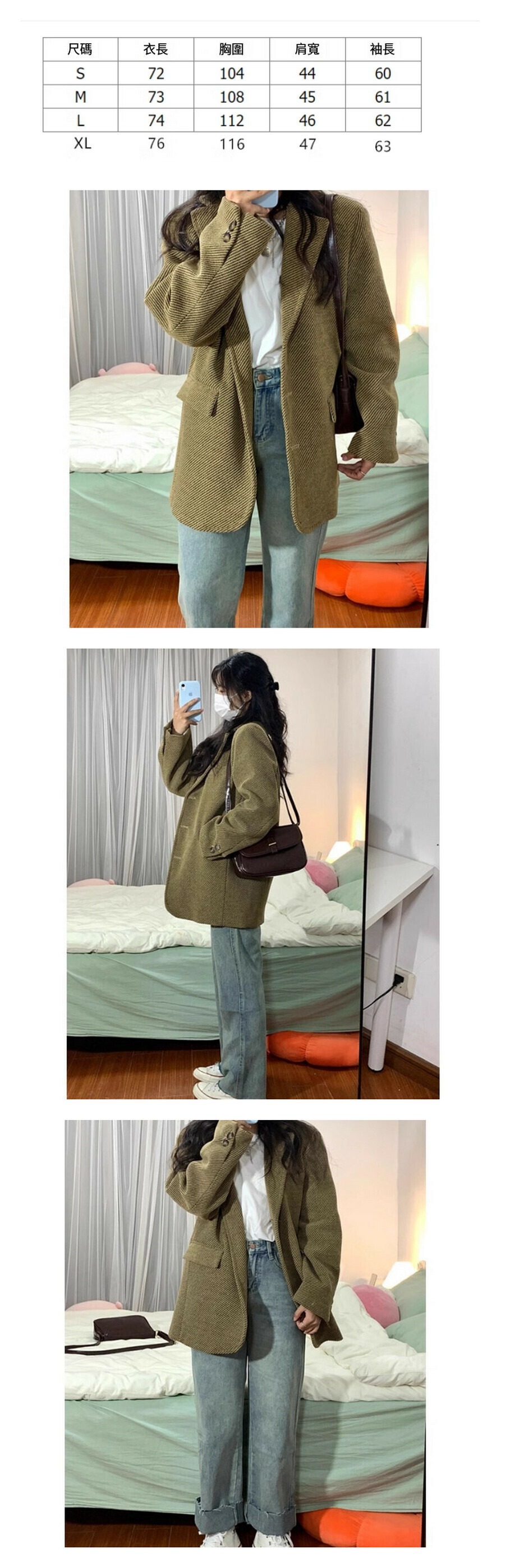熱賣毛呢西裝外套【黃色】尺碼【S碼—XL碼】【下單後請聯絡客服確認發貨尺碼】