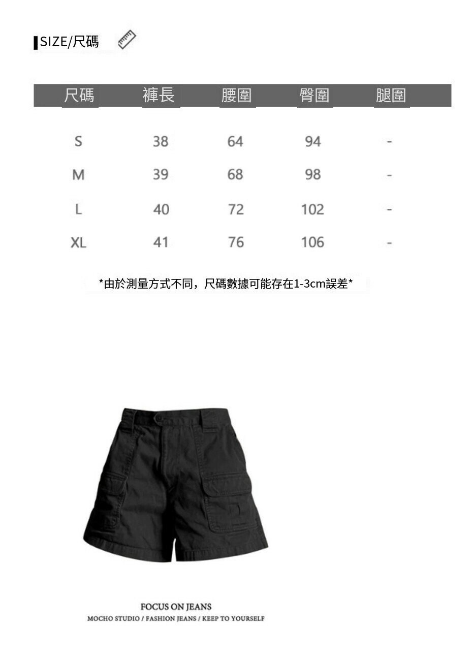 熱賣工裝牛仔短褲【黑色】尺碼【S碼-XL碼】【下單後請聯絡客服確認發貨尺碼】