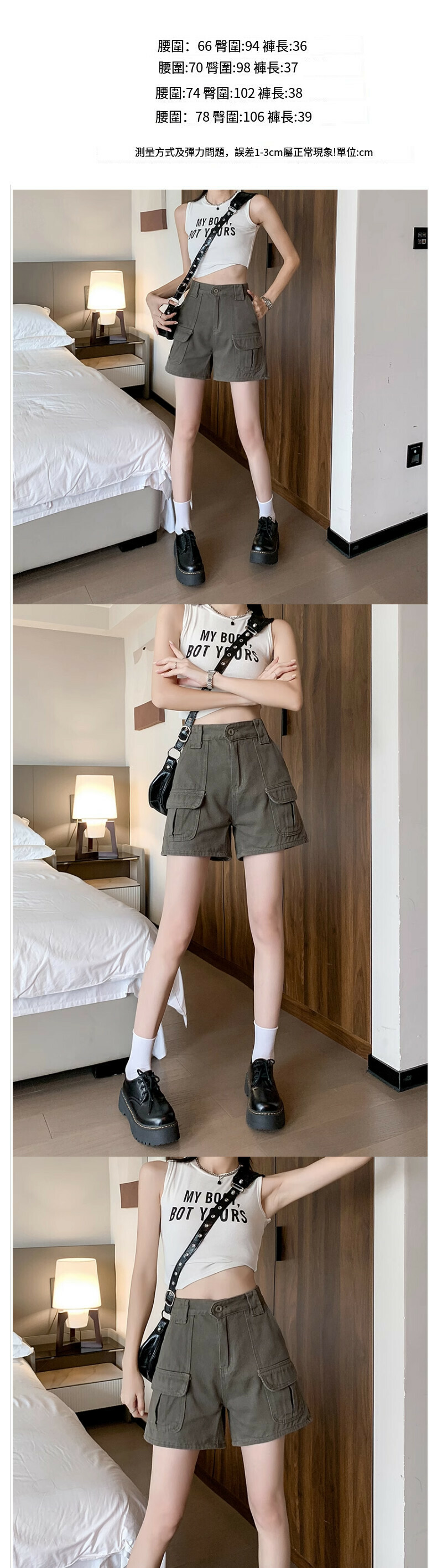 熱賣工装牛仔短裤【卡其灰色】【S-XL碼】(下單後請聯絡客服確認發貨尺碼)