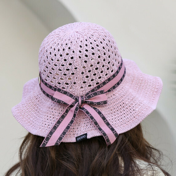 熱賣編織防曬遮陽漁夫帽女(粉色)