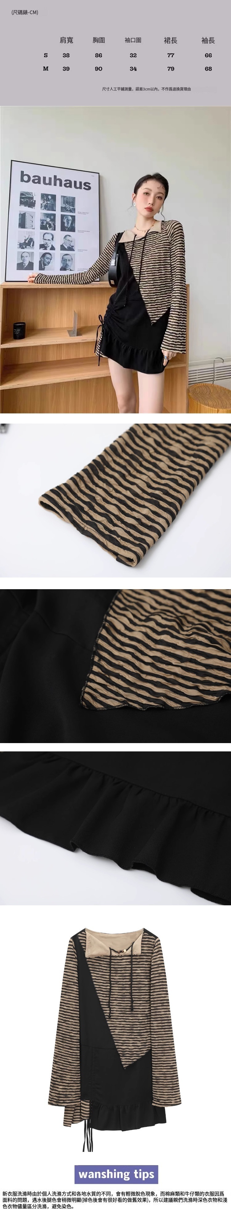 熱賣黃黑色條紋長袖連衣裙(圖片色)(S/M碼)(下單後聯絡客服確認發貨尺碼)