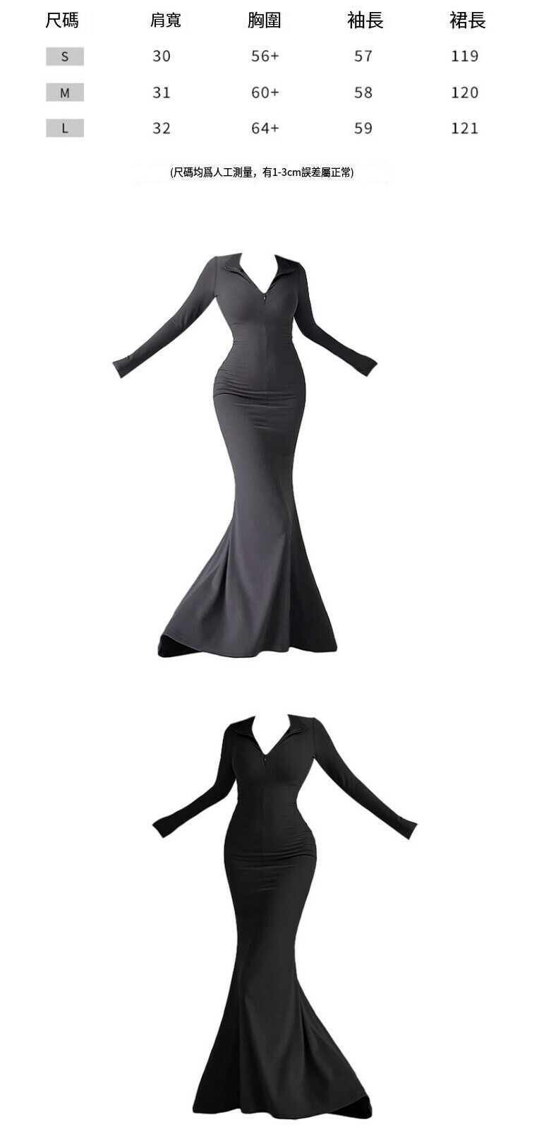 熱賣拉鍊翻領長袖包臀魚尾連衣裙(灰色 S碼-L碼)(下單後請聯絡客服確認發貨尺碼)