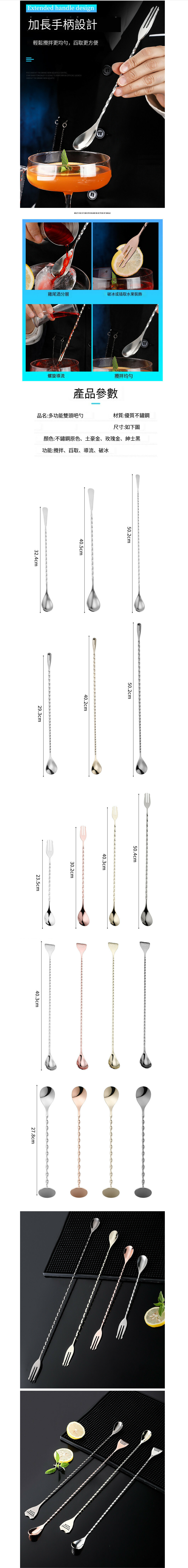 熱推不銹鋼長吧勺雞尾酒攪拌棒(水滴吧勺銀色-50.2cm-【2個裝】)