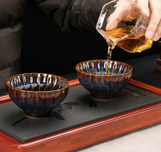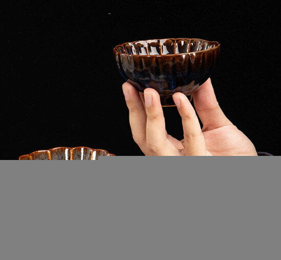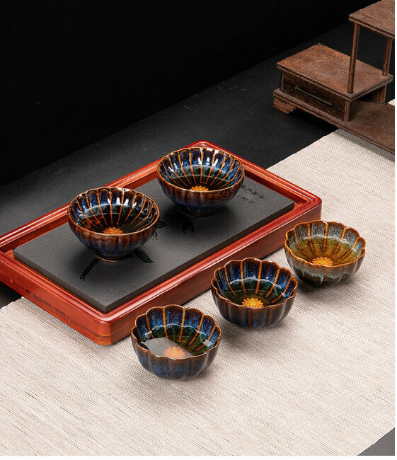 爆款【1個裝】陶瓷窯變茶盞(孔雀窯變藍-金蓮花)