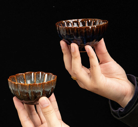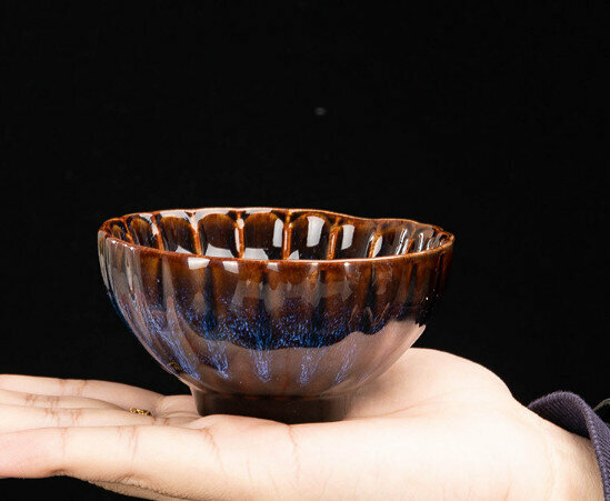 爆款【1個裝】陶瓷窯變茶盞(花瓣窯變藍)