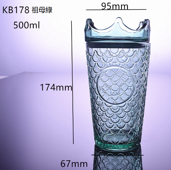 爆款【1個】浮雕魚鱗紋玻璃杯(規格:綠色)