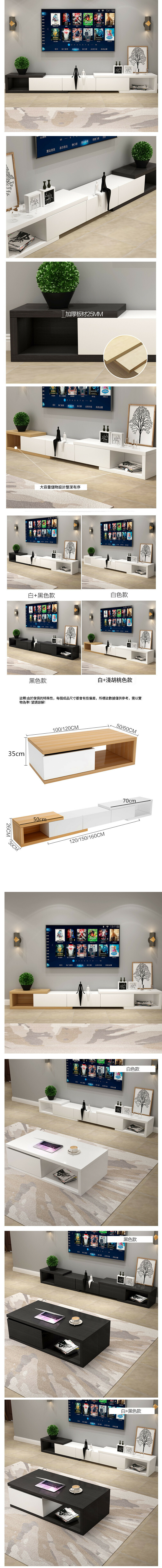 爆款【1件裝】輕奢極簡岩板可伸縮茶幾(暖白加淺胡桃--100*50*35)