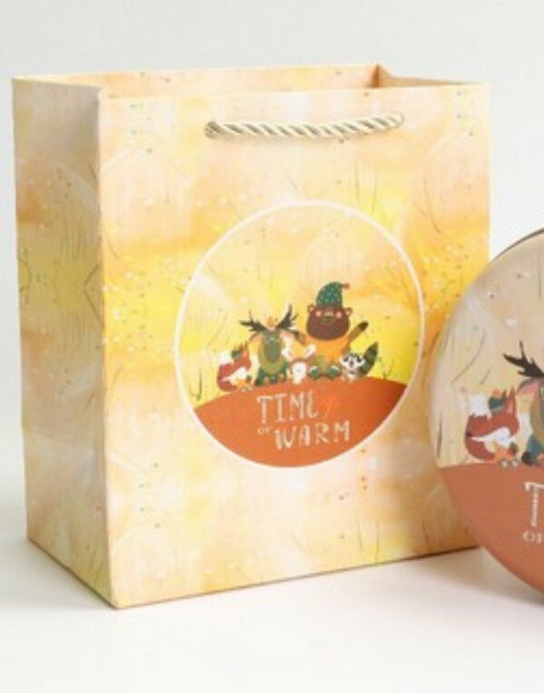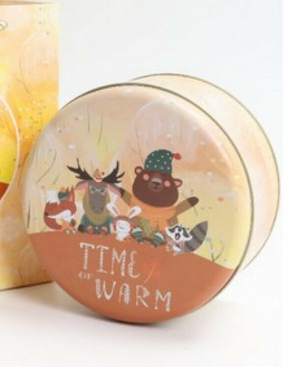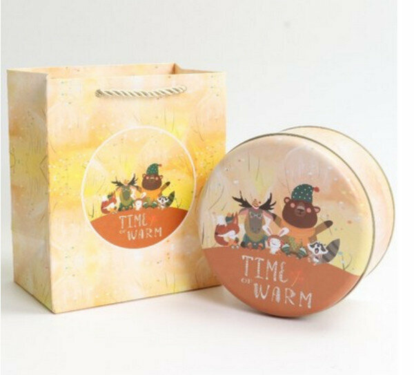 爆款【10個】可愛圓形精緻盒子-動物派對-小號套裝(盒子【5.5寸:13.5*7cm】+手提袋)