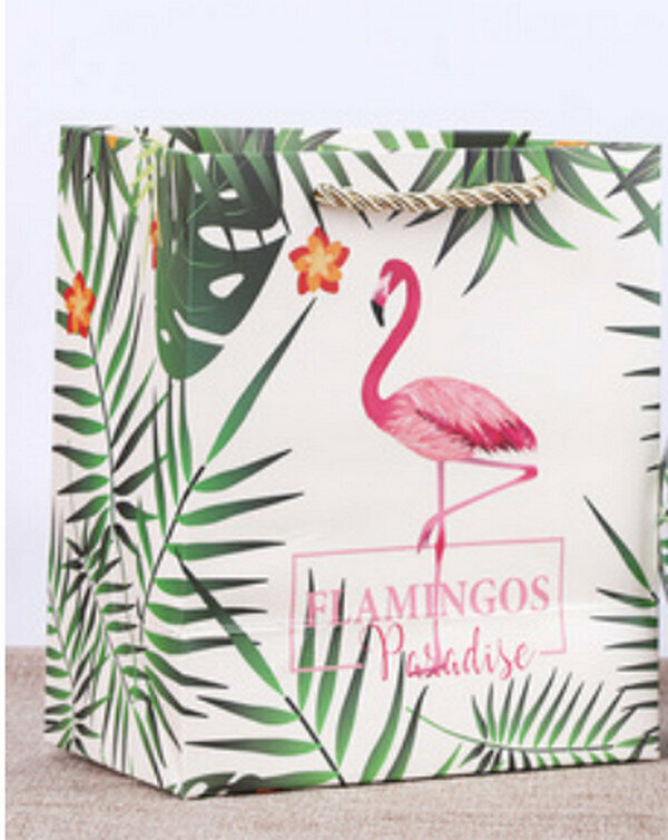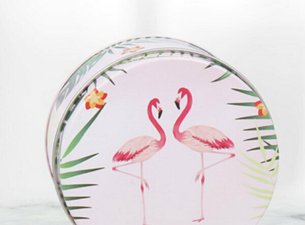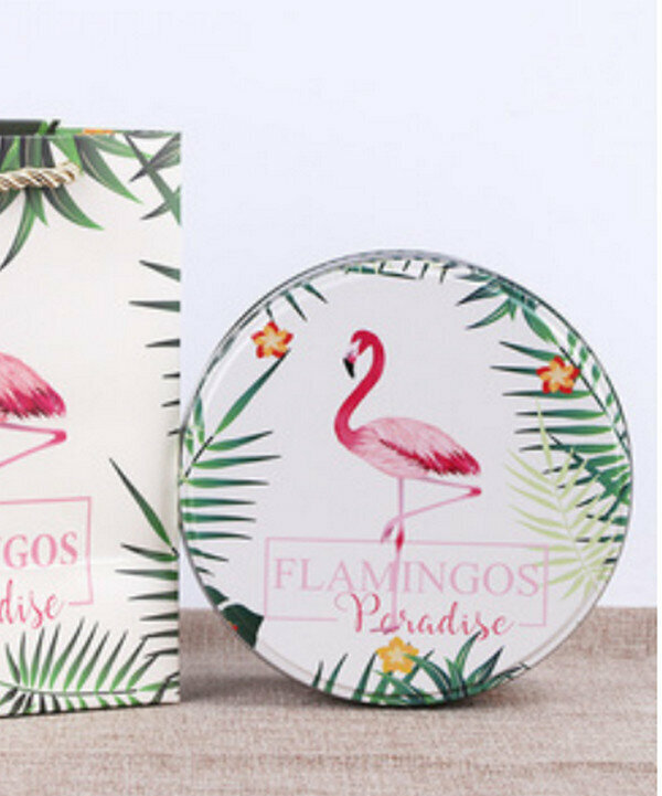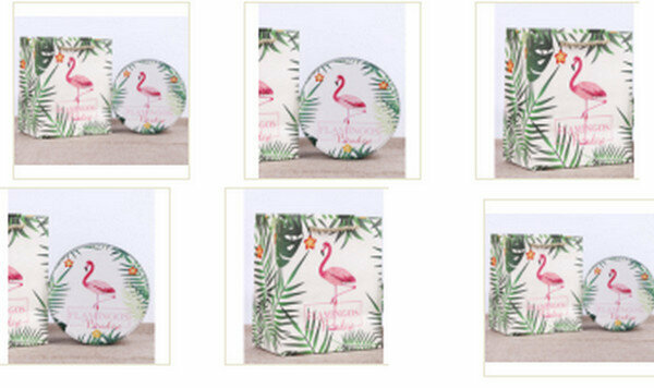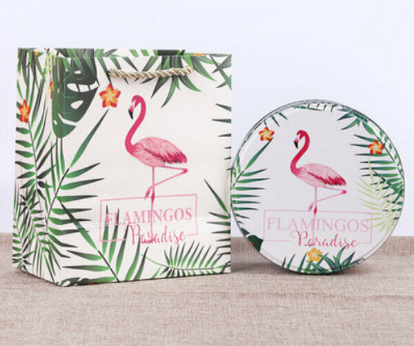 爆款【10個】可愛圓形精緻盒子-火烈鳥-小號套裝(盒子【5.5寸:13.5*7cm】+手提袋)