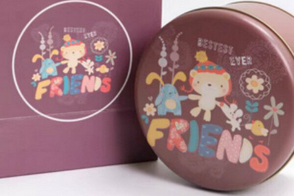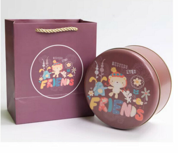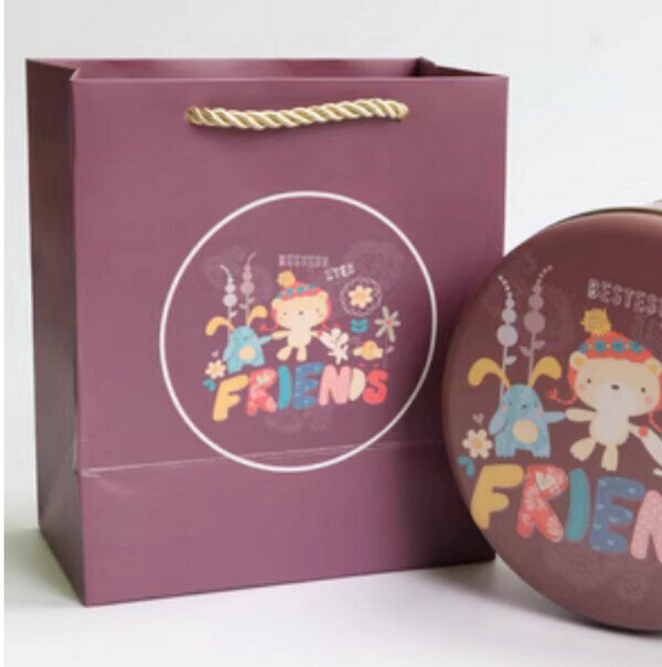 爆款【10個】可愛圓形精緻盒子-朋友-小號套裝(盒子【5.5寸:13.5*7cm】+手提袋)