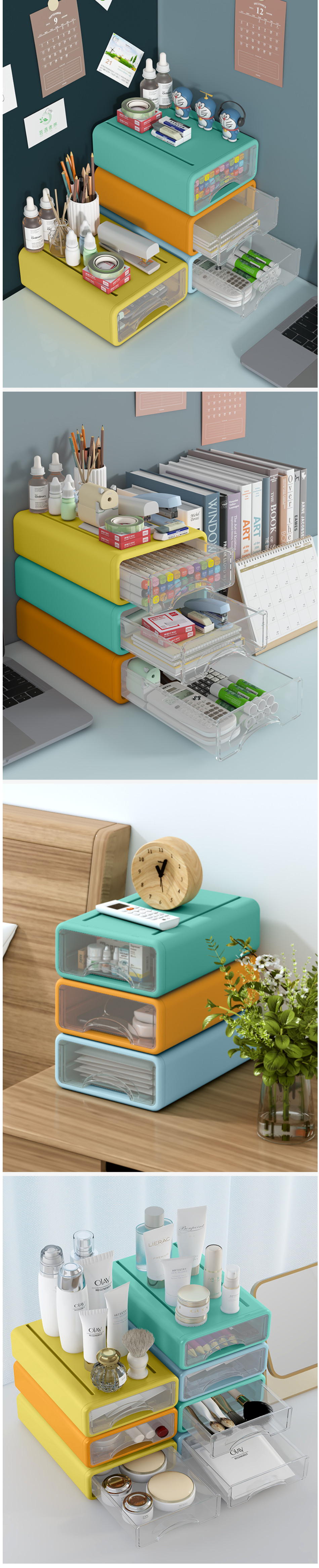 爆款【2個裝】桌面收納盒塑膠透明抽屜式帶蓋(杏子橘+天空藍)
