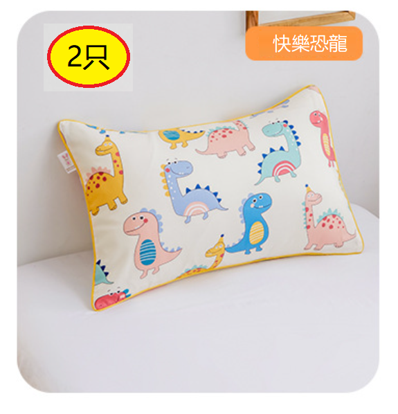 爆款【2只】兒童卡通純棉枕套(快樂恐龍)(尺寸:枕套48*74cm)