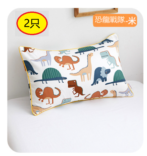 爆款【2只】兒童卡通純棉枕套(恐龍戰隊-米)(尺寸:枕套40*60cm)