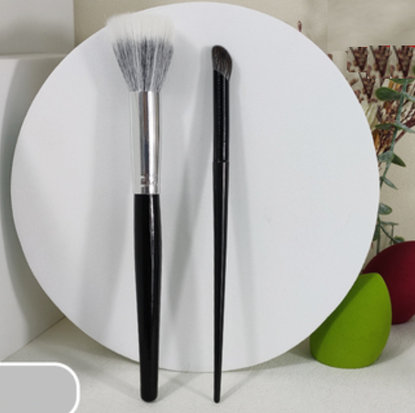 爆款【2支】大號點彩腮紅刷折角睫毛刷(顏色:黑色 羊毛)