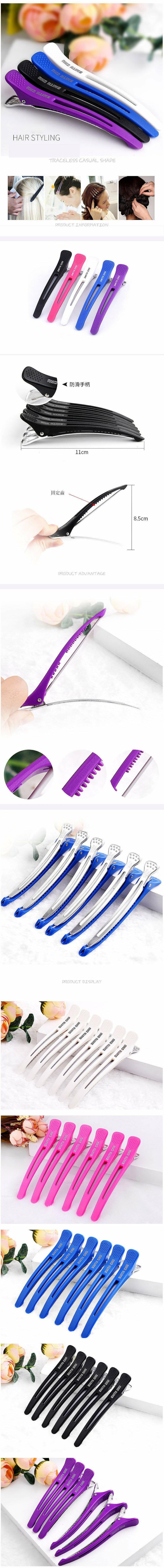爆款【6只裝】美發造型鴨嘴夾(無痕夾玫紅)