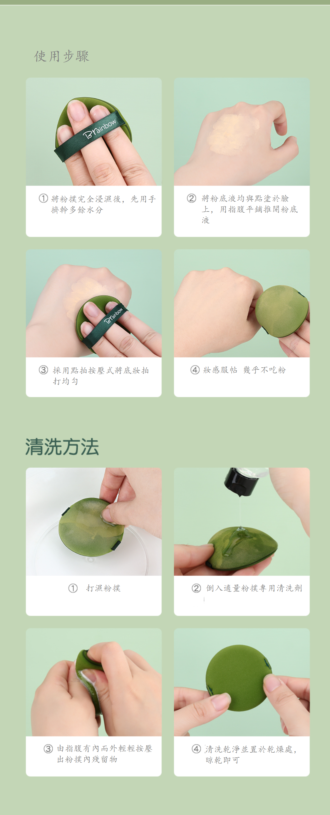 爆款【6片裝水滴+圓形】氣墊散粉粉餅粉底液專用海綿粉撲(顏色:抹茶綠(贈收納盒1個))
