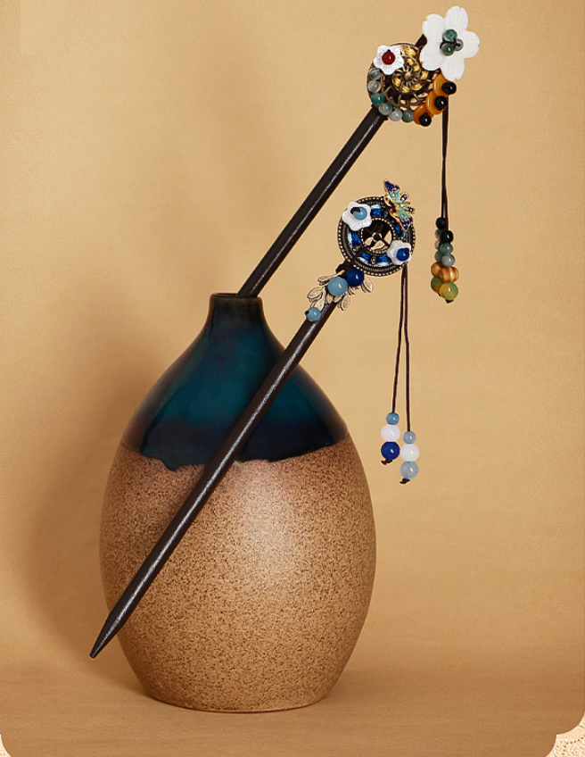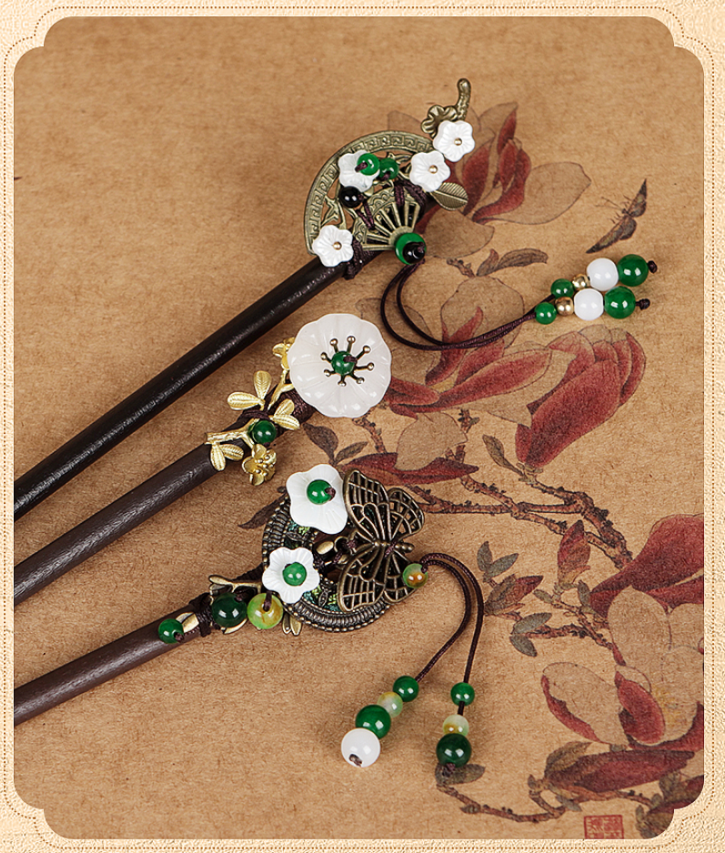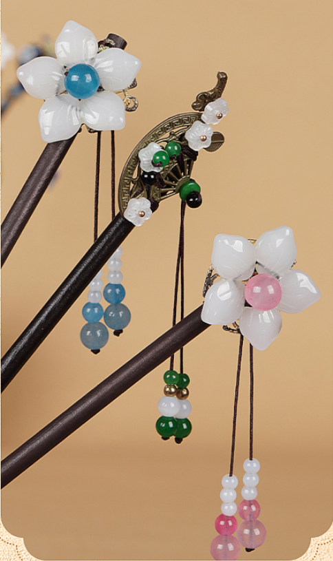爆款古風流蘇氣質挽發木簪(木蘭花)(尺寸:簪長約18cm)