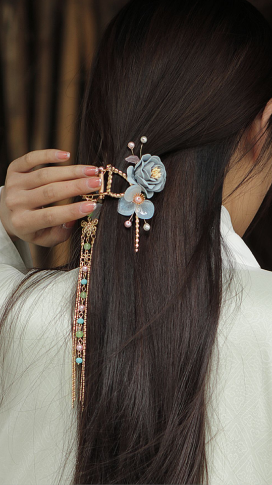 爆款古風雅緻氣質流蘇髮夾(紅嫣)(尺寸:抓夾長約8*3.5cm,流蘇長約13cm)