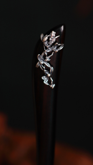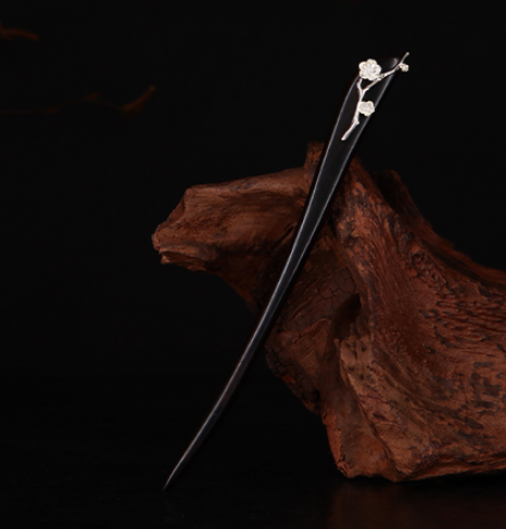 爆款古風簡約黑檀木配銀髮簪(淩霜)(尺寸:長17.8cm)