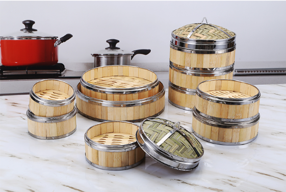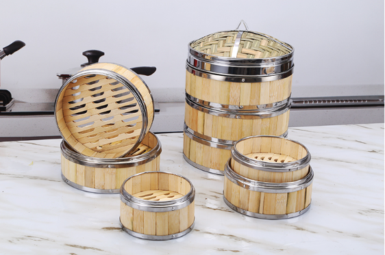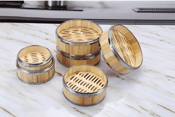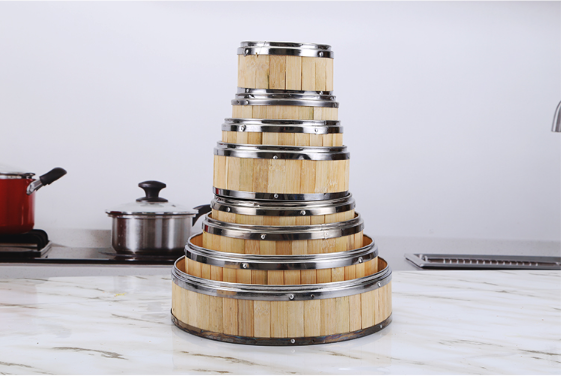 爆款竹制不銹鋼包邊蒸籠(壹籠壹蓋)(規格:3.5寸-8寸)(下單後請聯絡客服確認發貨尺寸)