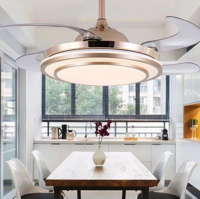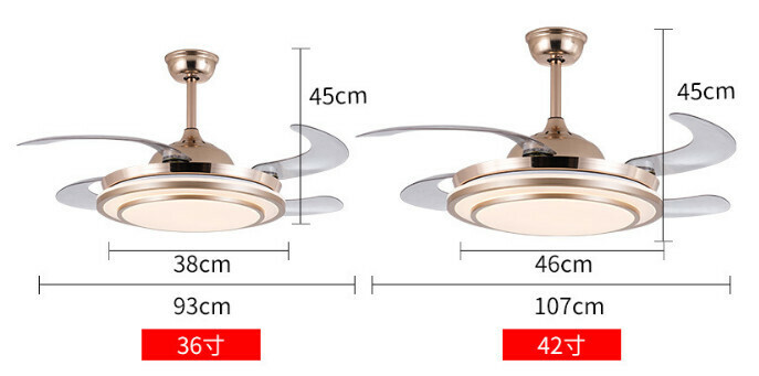 爆款餐廳臥室家用吊扇燈(42寸9099金色-36wLED變光【變頻遙控款】)