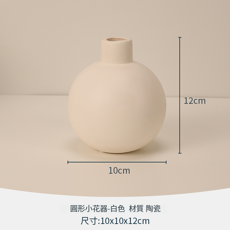 爆款陶瓷小花瓶擺件裝飾品(圓形小花器-白色)