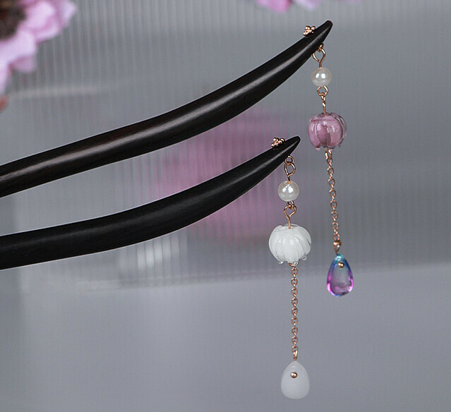 爆款古典清雅流蘇黑檀木髮簪(南薏-幻彩款)(尺寸:簪長18cm)