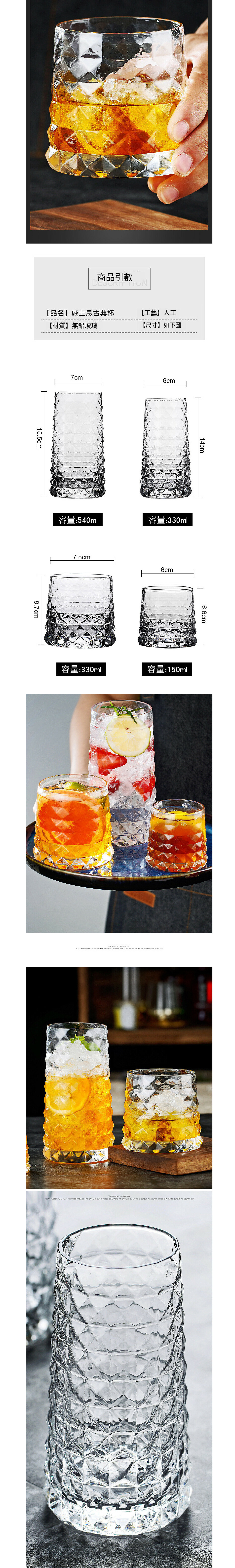 爆款古典杯 威士卡杯 洋酒杯 啤酒杯(高款大號540ml-【2個裝】)