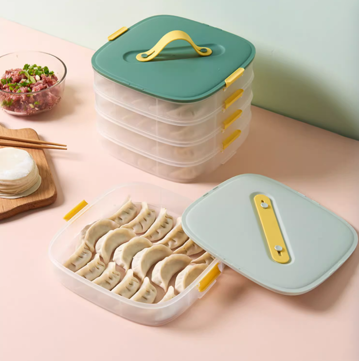 爆款水餃冷凍密封保鮮盒(淺綠)(尺寸:24.1*23*4.5CM)