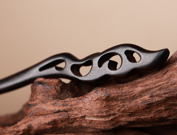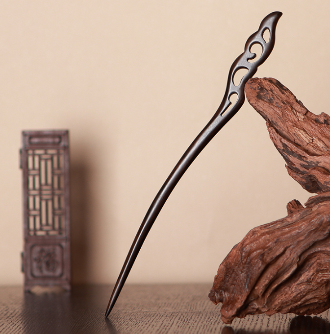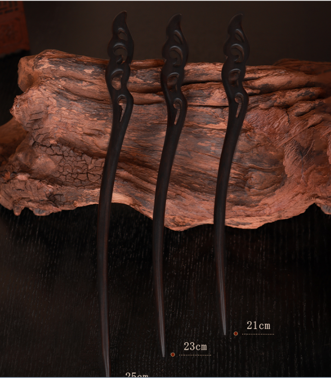 爆款加長款古風簡約黑檀木髮簪(挽月)(尺寸:長23cm)