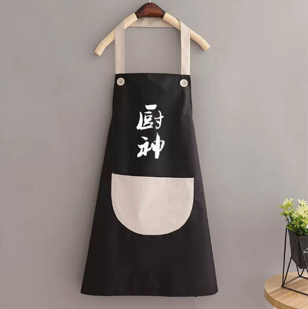 爆款時尚防油圍裙-防水掛脖黑配灰書法廚神