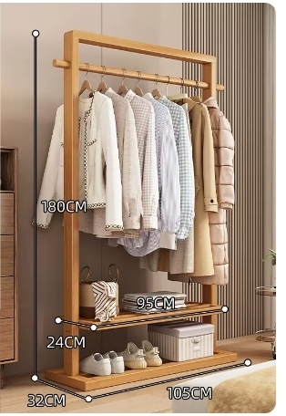 爆款落地實木衣帽架(高檔加高款-原木色105CM)