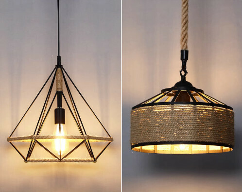爆款麻繩復古吊燈(麻球B款中號)(直徑30*高30cm)【暖光】