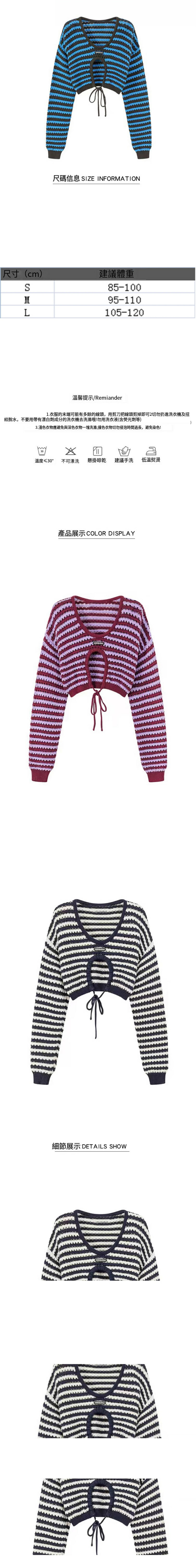 爆款鏤空系帶針織罩衫(藍色)(S/M/L碼,下單後請與客服聯繫發貨尺碼)