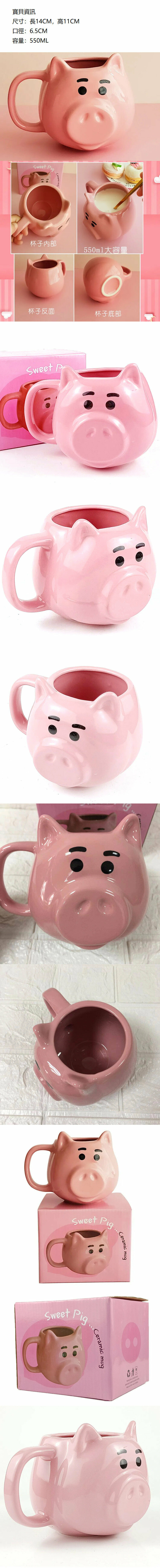 爆款日式陶瓷杯帶勺子-(粉紅圓豬豬 配勺子+杯刷)