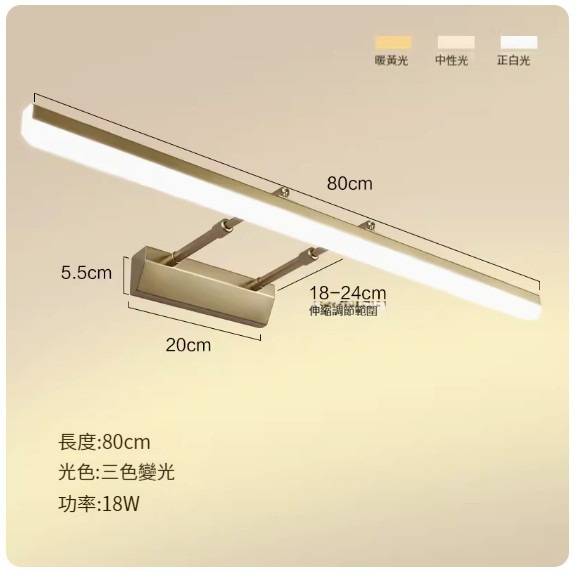 爆款led免打孔壁燈【伸縮款-40CM-9W白光(黑色)】