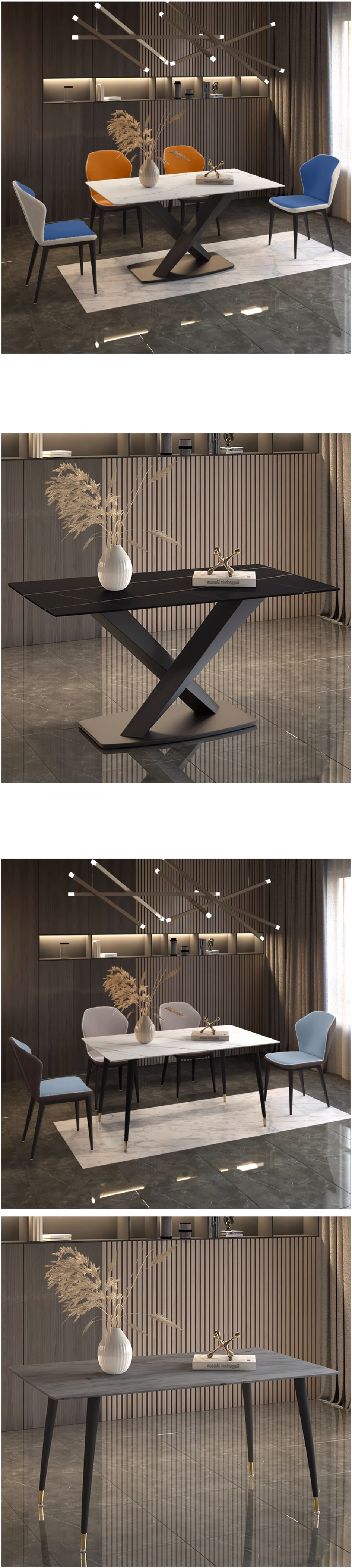 爆款輕奢風簡約長方形岩板餐桌(勞倫白金/X腿/直邊)(尺寸:80*140CM)