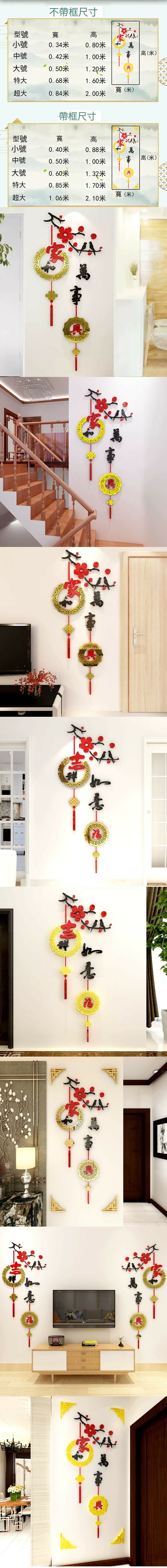 爆款客廳臥室玄關電視背景牆裝飾貼【如意福-黑+紅+金色】尺寸【特大】