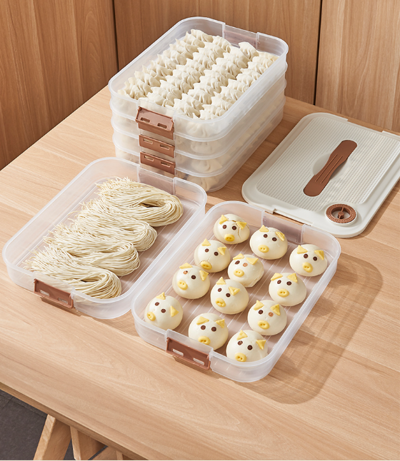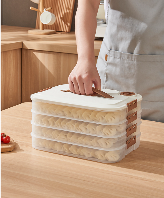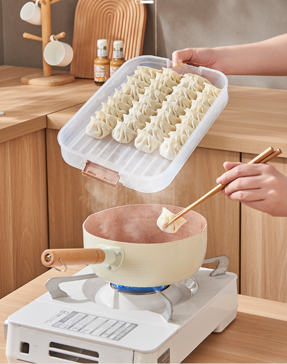 爆款鎖鮮餃子收納盒(奶白色)(規格:30.5*22.5*5.5CM)