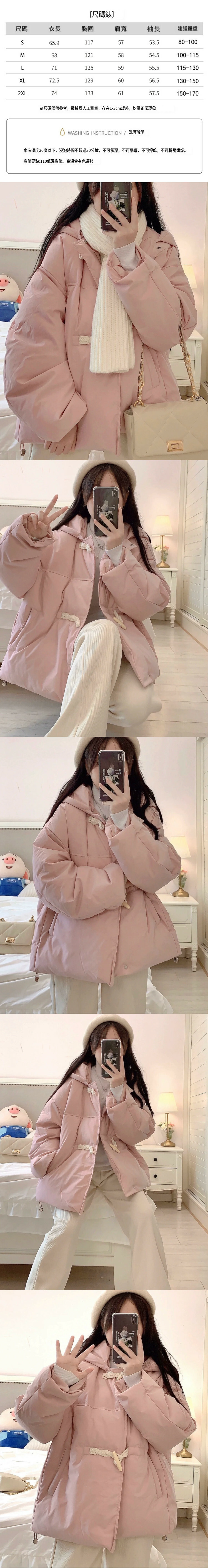 爆款寬鬆羽絨棉服(粉色)(S/M/L/XL/2XL下單後與客服聯系發貨的尺碼)