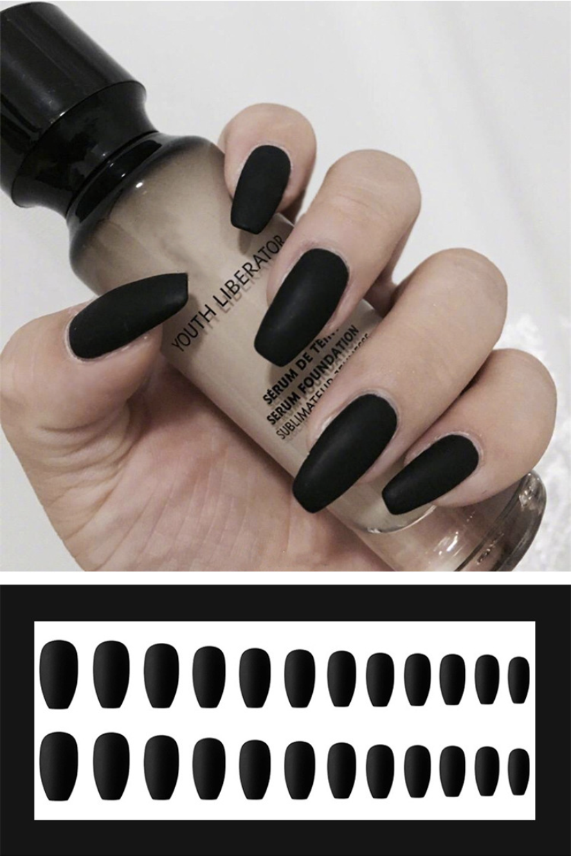 爆款美甲 磨砂芭蕾穿戴美甲黑色Y10#(膠水款)