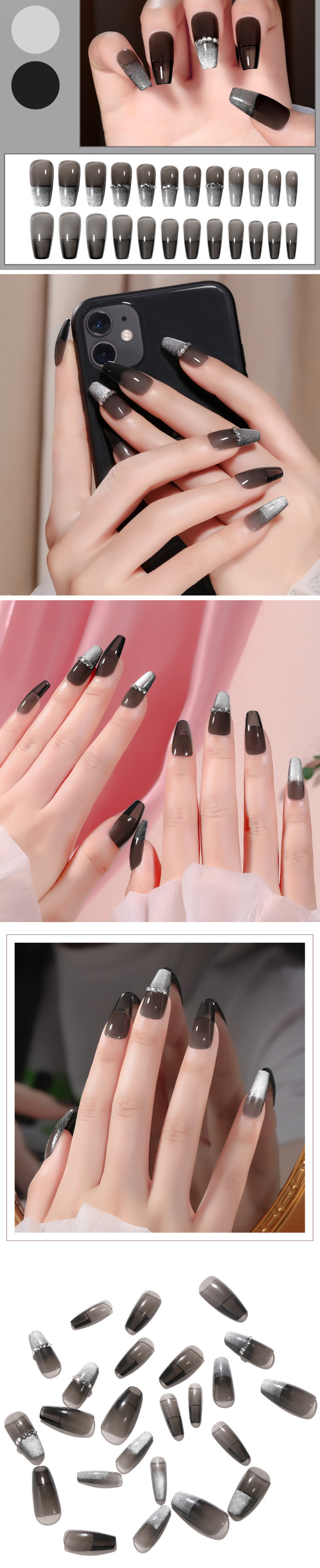 爆款美甲 灰貓眼手工穿戴甲(24片盒裝)