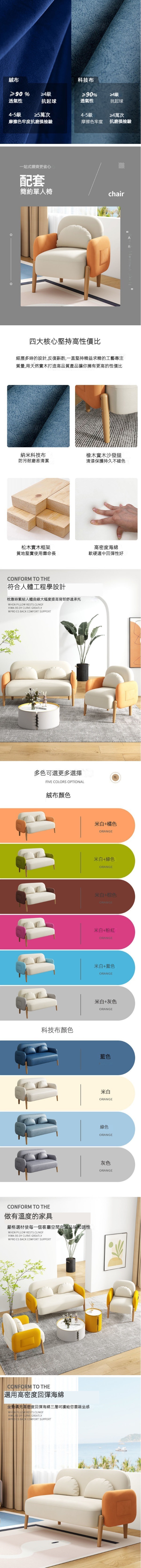 爆款小戶型現代簡約布藝沙發(【絨布】米白色+棕色)(大雙人1.3米+2個抱枕)