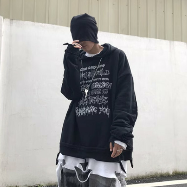 爆款喪系字母印花BF風破洞衛衣【黑色L-2XL碼,下單後與客服確認發貨尺碼】