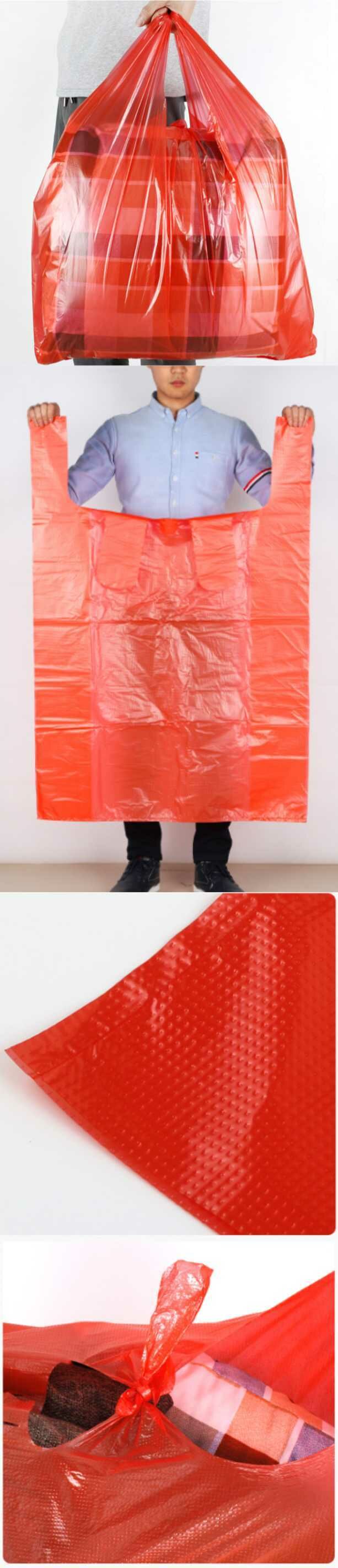 爆款(50個裝)一次性加厚塑膠垃圾袋(紅色)(尺寸:65cm*97cm)