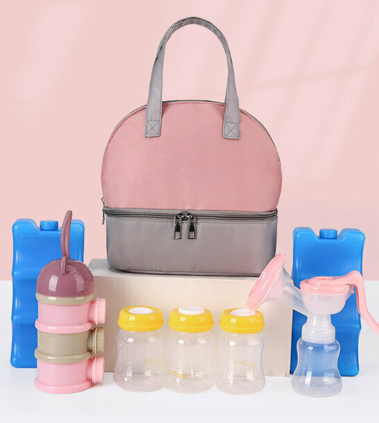 爆款外出手提保溫保冷奶瓶袋(米配藍)