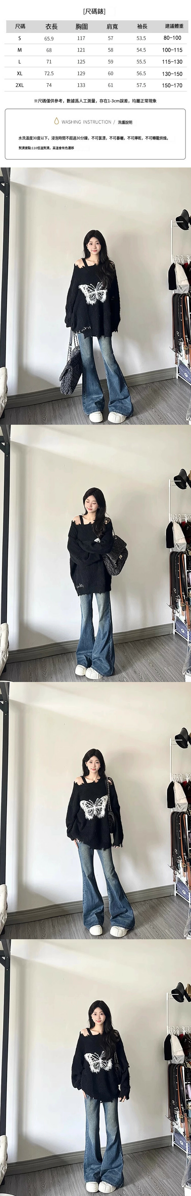 爆款破洞針織毛衣(黑色)(S/M/L/XL下單後與客服聯系發貨的尺碼)