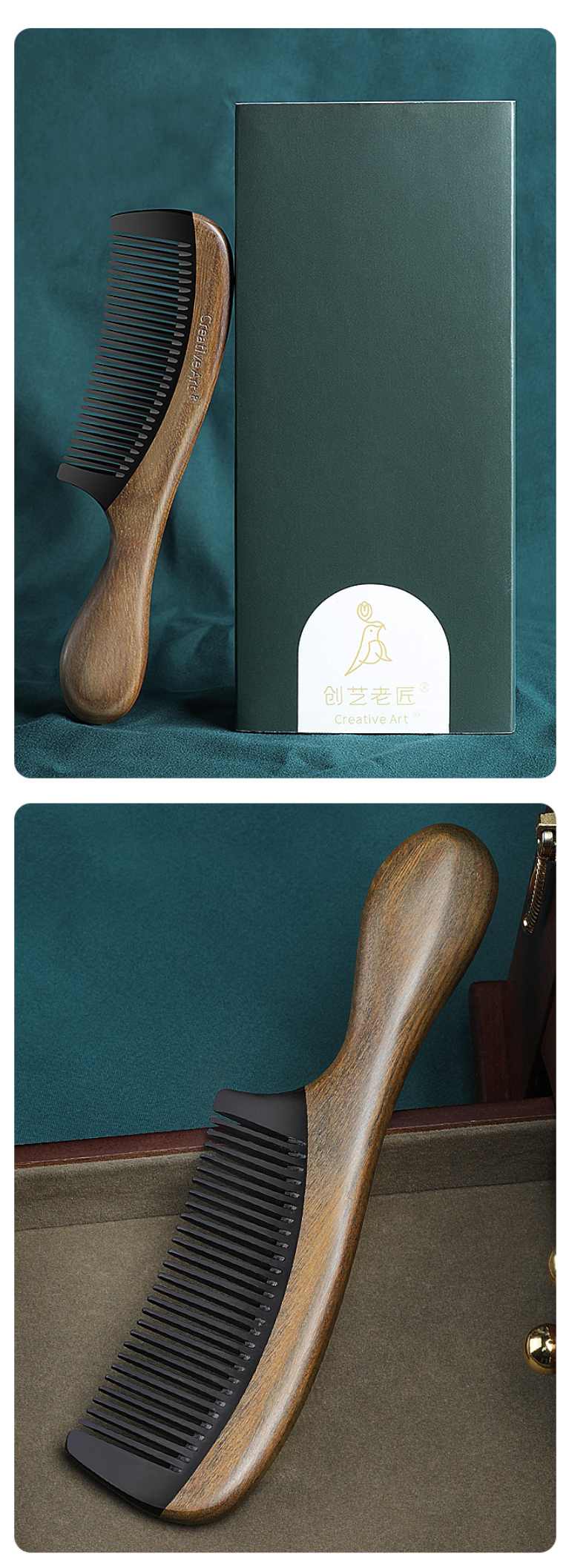 爆款【甄選老料 柔順長髮】精品天然綠檀木牛角梳