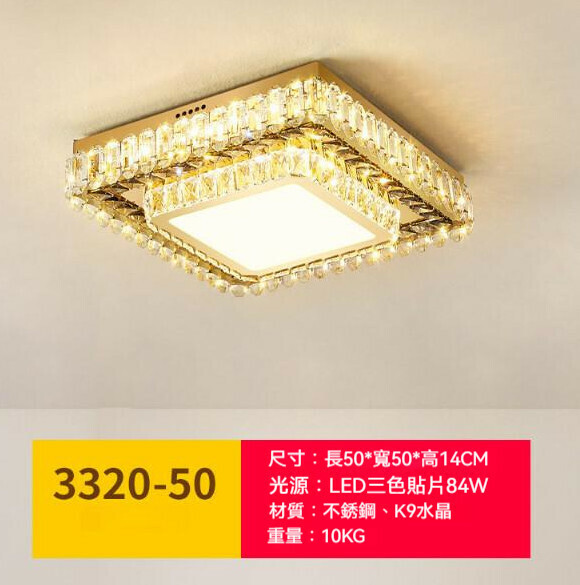 爆款簡約大氣水晶吸頂燈(方形50cm)【LED三色變光】